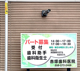 須賀4北交差点角地の歯科医院、「赤塚歯科医院」の大きな看板が目印です。